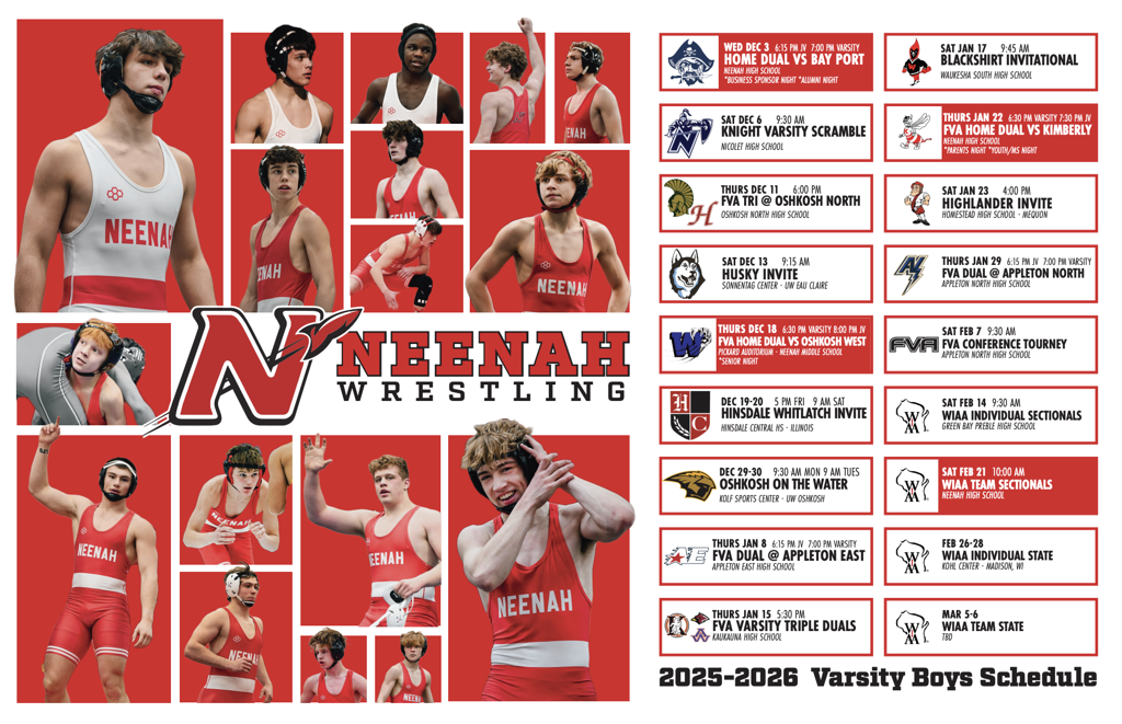 NHS Boys Wrestling 2025-2026 Schedule Poster
