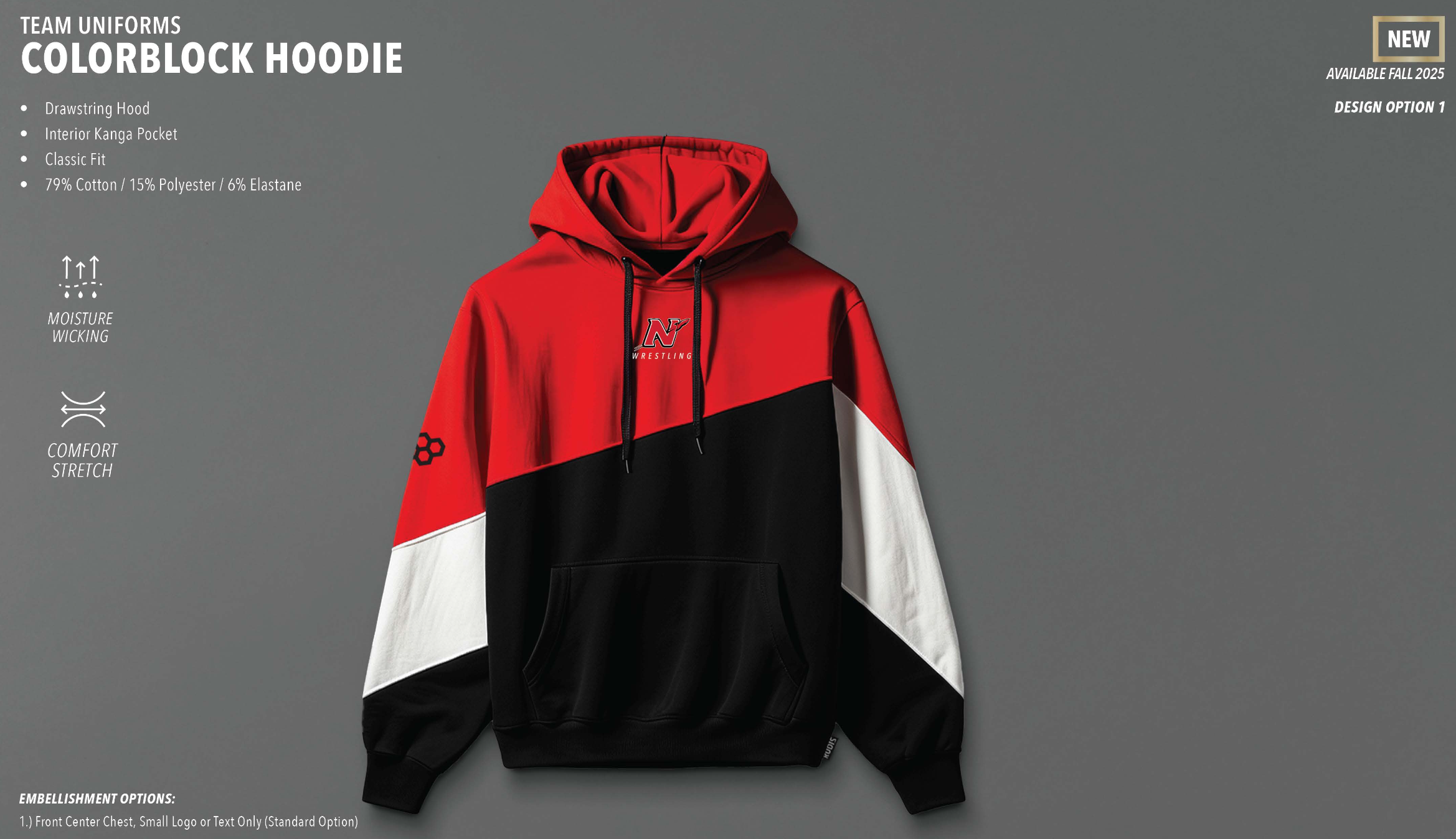 RUDIS Champion Bundle #1 Raise $400: Championship Singlet, Short Sleeve Performance T (White or Red), Long Sleeve Elite Performance T, Colorblock Hoodie